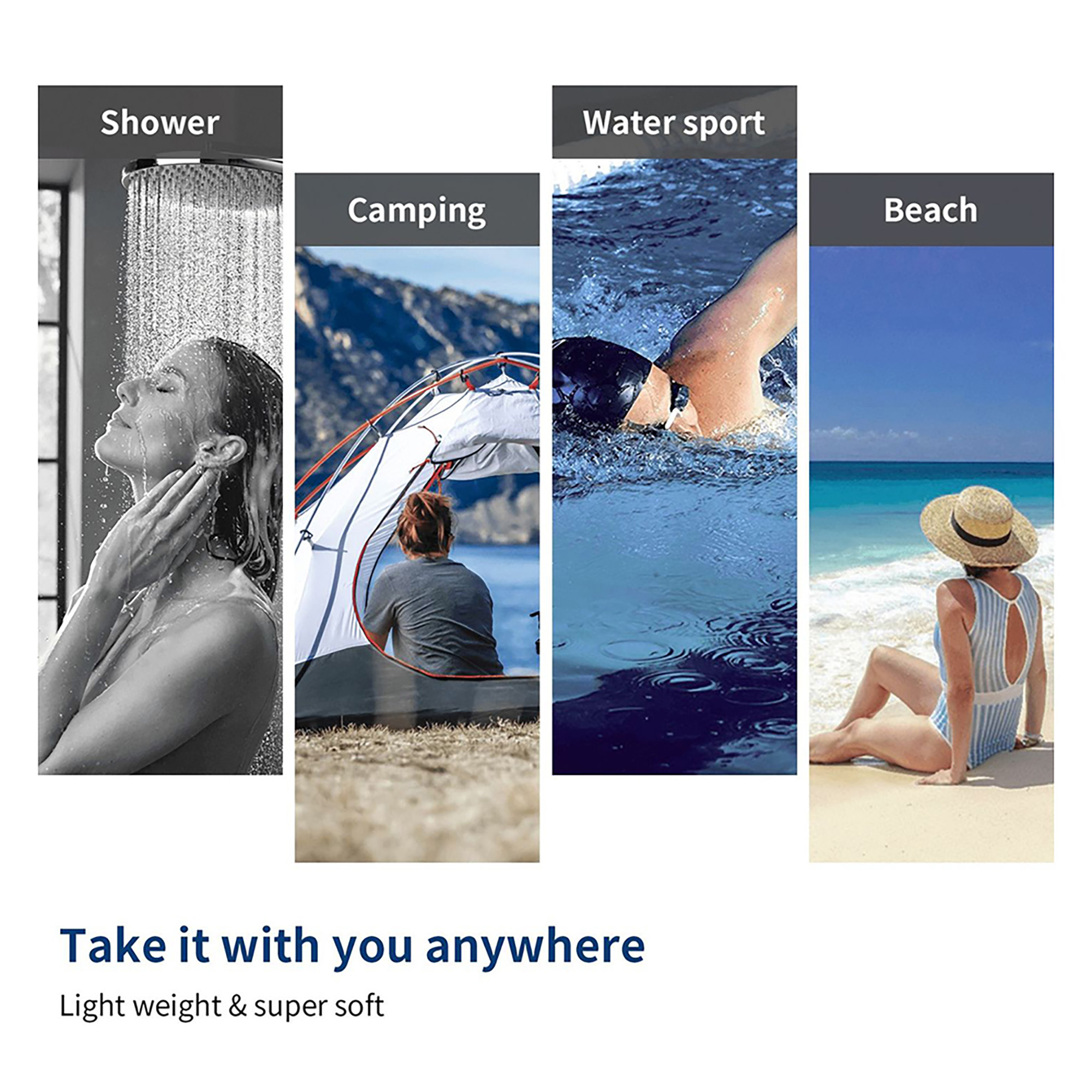 Soft & Quick-Dry Material - Crafted from soft microfiber, this towel feels gentle against the skin while offering fast-drying performance. The lightweight and skin-friendly fabric absorbs water well, dries quickly after swimming, and is easy to carry in the matching beach backpack.